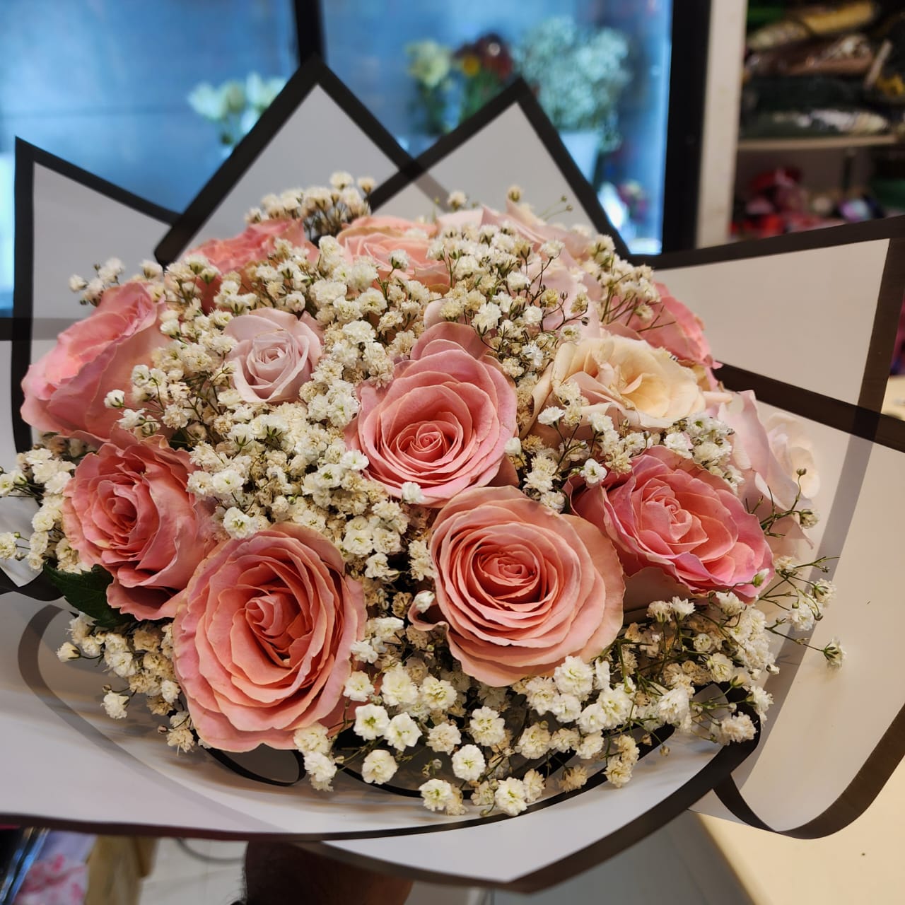 ماسكات ورد طبيعي( 8 وردات مع جبسوفيل وتغليف )